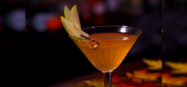 Strain it in a chilled martini glass and serve with optional apple slices on top.