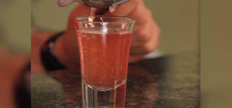 Instructions: In your shot glass, add the raspberry syrup and layer the vodka on the edge (top of the syrup). Then, add drops of Tobasco between the layers.