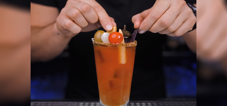 Instructions: Moisten and rim your glass with salt, fill it with ice, and then set aside. Except for olives and celery, combine all the remaining ingredients in your bar shaker filled with ice.