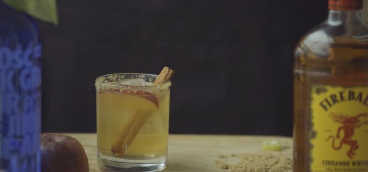 Wet the rim of a rocks glass, fill it with brown sugar then set it aside. In a martini shaker, add vodka, apple juice, whiskey, and a few ice cubes. Shake it well, then pour in a rock glass. Serve it with cinnamon.