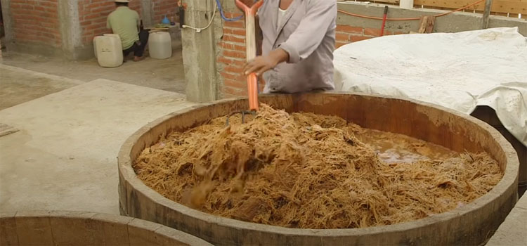 After getting the agave juice, their fibers and juices are fermented into alcohol using naturally present yeasts. The fermentation process occurs in containers of diverse materials like stone, soil, and wood.
