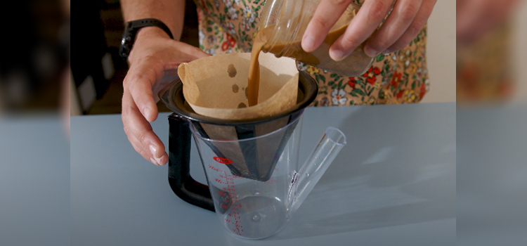 Coffee filter straining may take 25 minutes per half cup, and once it’s halfway through, you can use a new coffee filter for faster filtration.