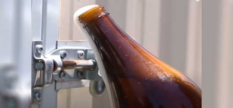 All the while, seal the bottle tightly in your mouth, leaving no openings to avoid spraying or spilling beer all over you.