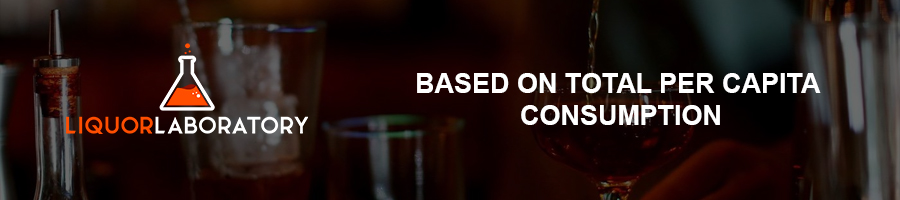 Ireland is home to five million people, but the record shows that it has 1.24 liters per person per year of whiskey consumed. Ireland has the same drinking rate as India.