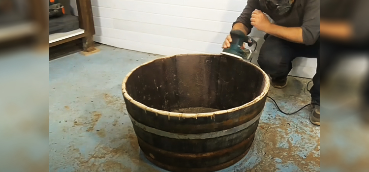 To make a whiskey barrel bar, ensure the whiskey barrels are clean and don’t have any loose staves.